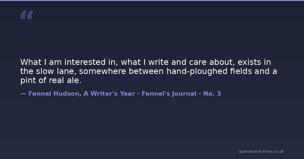 What I am interested in, what I write and care about, exists in the slow lane, somewhere between hand-ploughed fields and a pint of real ale.