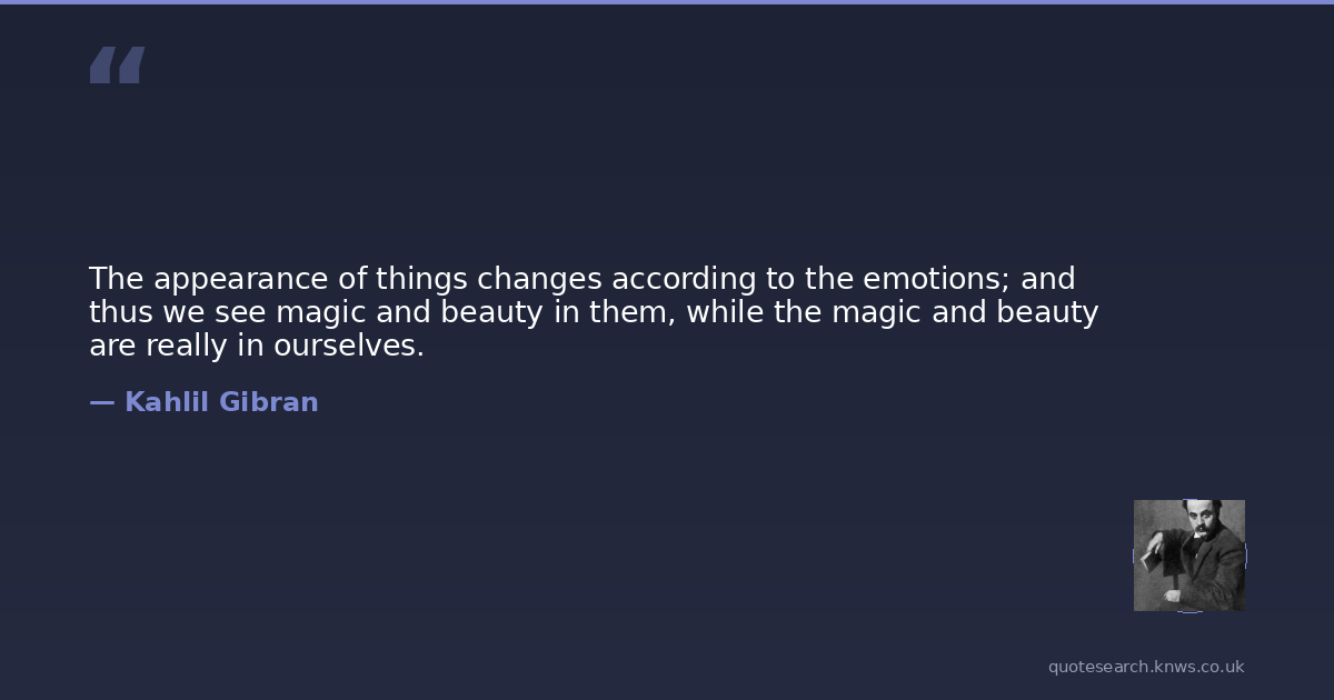 The appearance of things changes according to the emotions; and thus we see magic and beauty in them, while the magic and beauty are really in ourselves.
