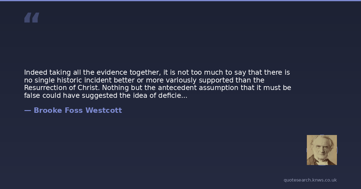 Indeed taking all the evidence together, it is not too much to say that there is no single historic incident better or more variously supported than the Resurrection of Christ. Nothing but the antecedent assumption that it must be false could have suggested the idea of deficiency in the proof of it.