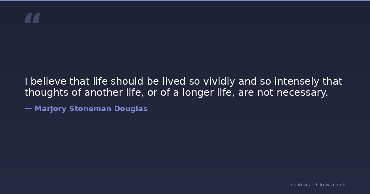 I believe that life should be lived so vividly and so intensely that thoughts of another life, or of a longer life, are not necessary.