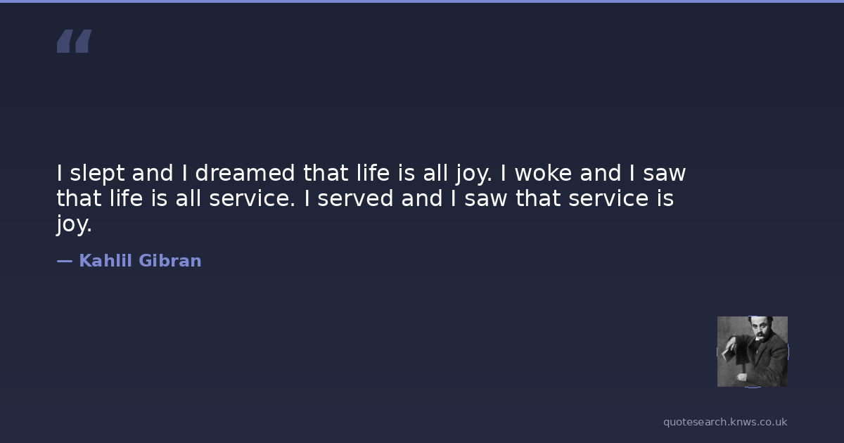 I slept and I dreamed that life is all joy. I woke and I saw that life is all service. I served and I saw that service is joy.