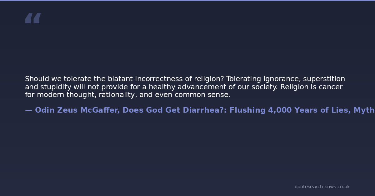 Should we tolerate the blatant incorrectness of religion? Tolerating ignorance, superstition and stupidity will not provide for a healthy advancement of our society. Religion is cancer for modern thought, rationality, and even common sense.