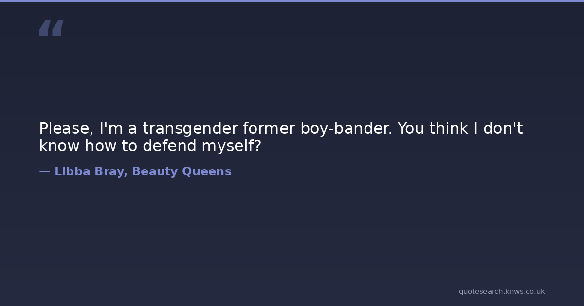 Please, I'm a transgender former boy-bander. You think I don't know how to defend myself?