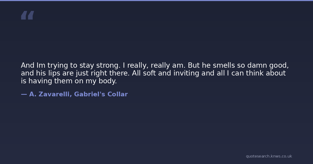 And Im trying to stay strong. I really, really am. But he smells so damn good, and his lips are just right there. All soft and inviting and all I can think about is having them on my body.