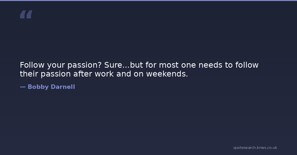 Follow your passion? Sure...but for most one needs to follow their passion after work and on weekends.