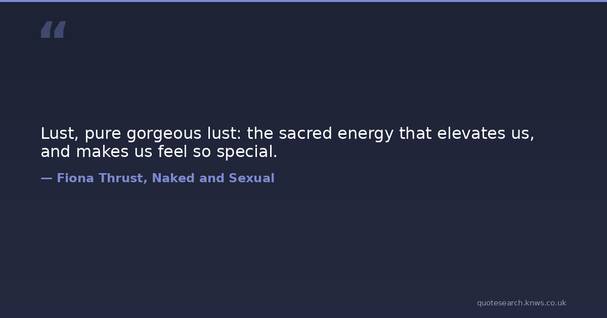 Lust, pure gorgeous lust: the sacred energy that elevates us, and makes us feel so special.