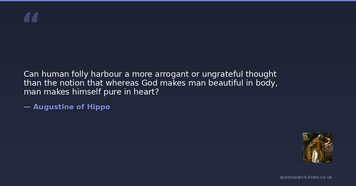 Can human folly harbour a more arrogant or ungrateful thought than the notion that whereas God makes man beautiful in body, man makes himself pure in heart?