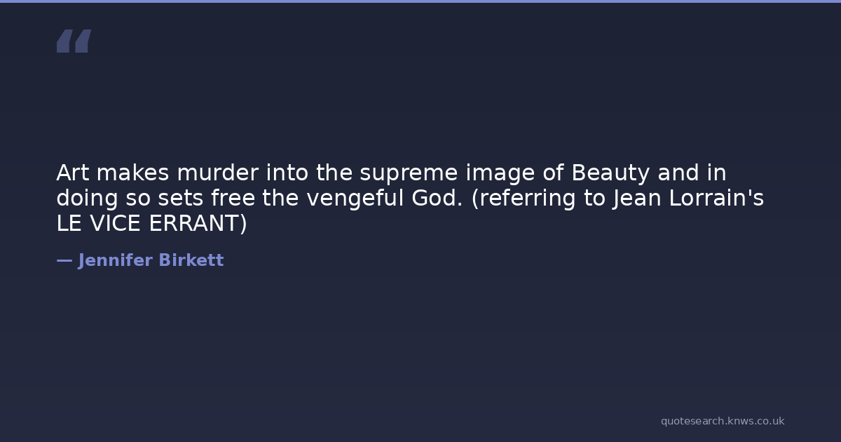 Art makes murder into the supreme image of Beauty and in doing so sets free the vengeful God. (referring to Jean Lorrain's LE VICE ERRANT)