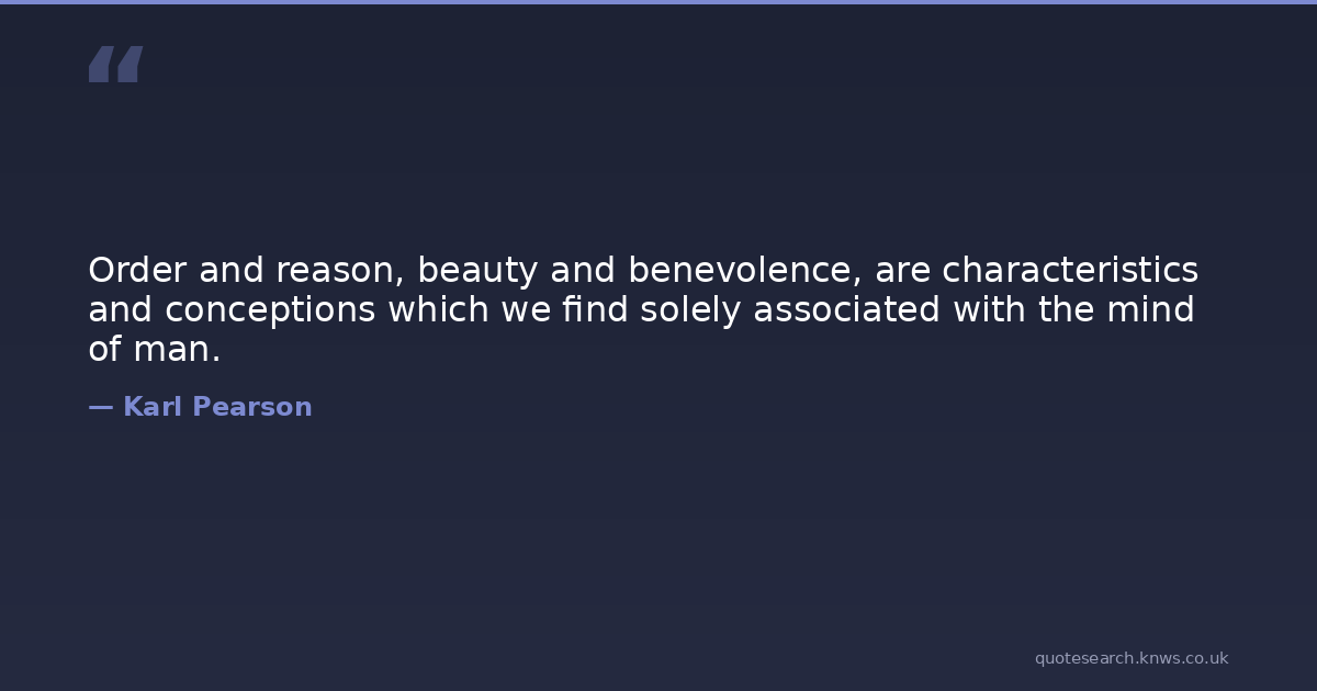 Order and reason, beauty and benevolence, are characteristics and conceptions which we find solely associated with the mind of man.