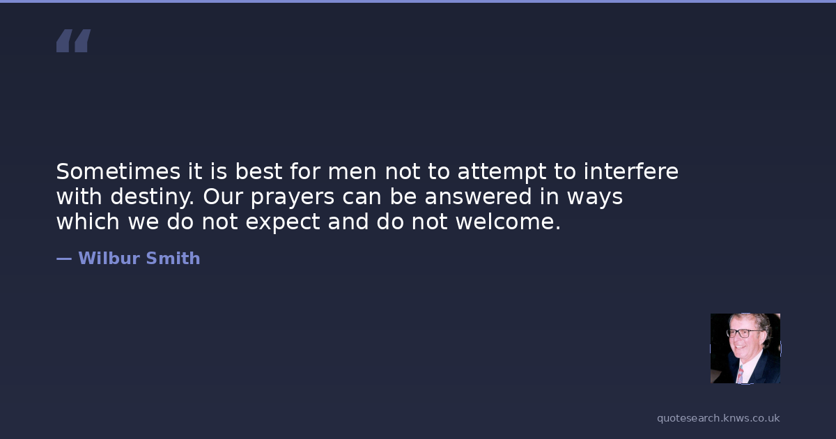 Sometimes it is best for men not to attempt to interfere with destiny. Our prayers can be answered in ways which we do not expect and do not welcome.