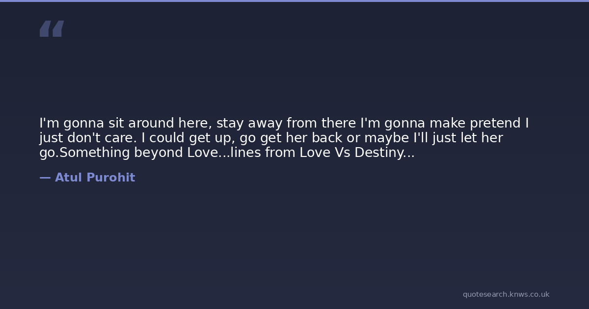I'm gonna sit around here, stay away from there I'm gonna make pretend I just don't care. I could get up, go get her back or maybe I'll just let her go.Something beyond Love...lines from Love Vs Destiny...