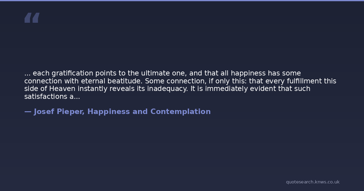 ... each gratification points to the ultimate one, and that all happiness has some connection with eternal beatitude. Some connection, if only this: that every fulfillment this side of Heaven instantly reveals its inadequacy. It is immediately evident that such satisfactions are not enough; they are not what we have really sought; they cannot really satisfy us at all.