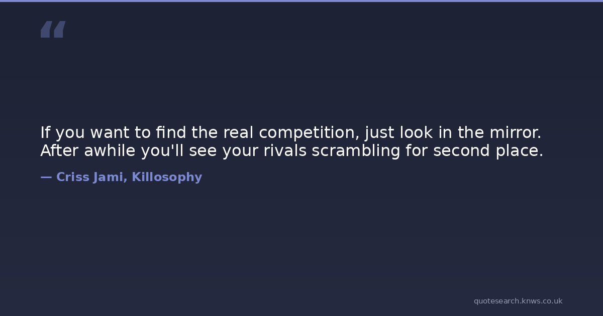 If you want to find the real competition, just look in the mirror. After awhile you'll see your rivals scrambling for second place.