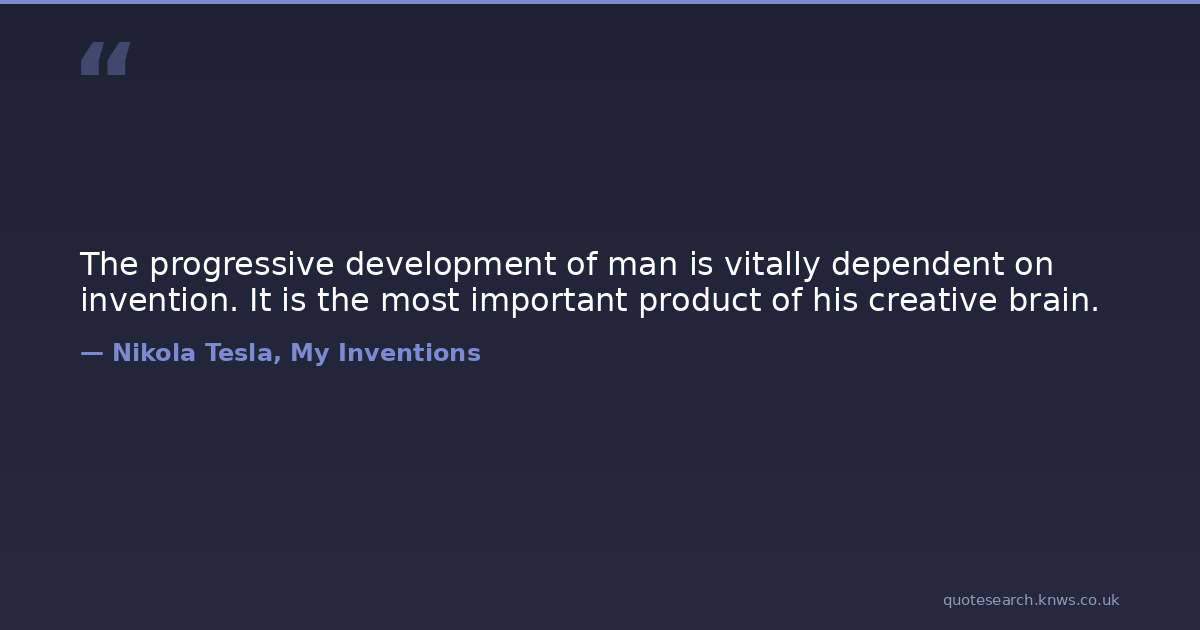 The progressive development of man is vitally dependent on invention. It is the most important product of his creative brain.