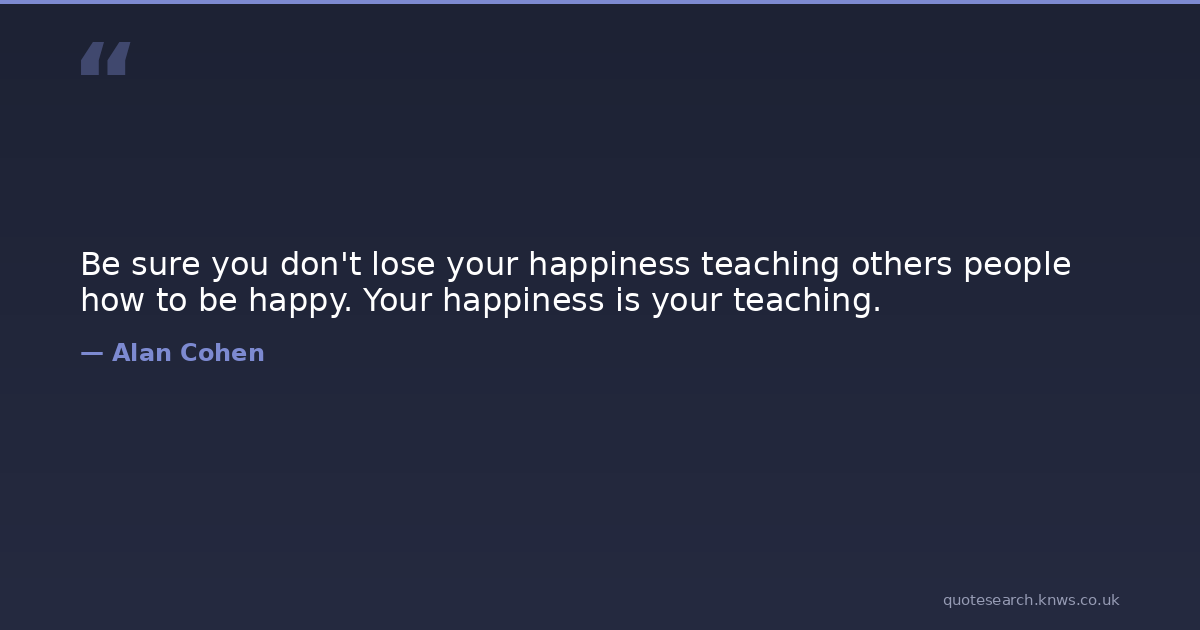 Be sure you don't lose your happiness teaching others people how to be happy. Your happiness is your teaching.