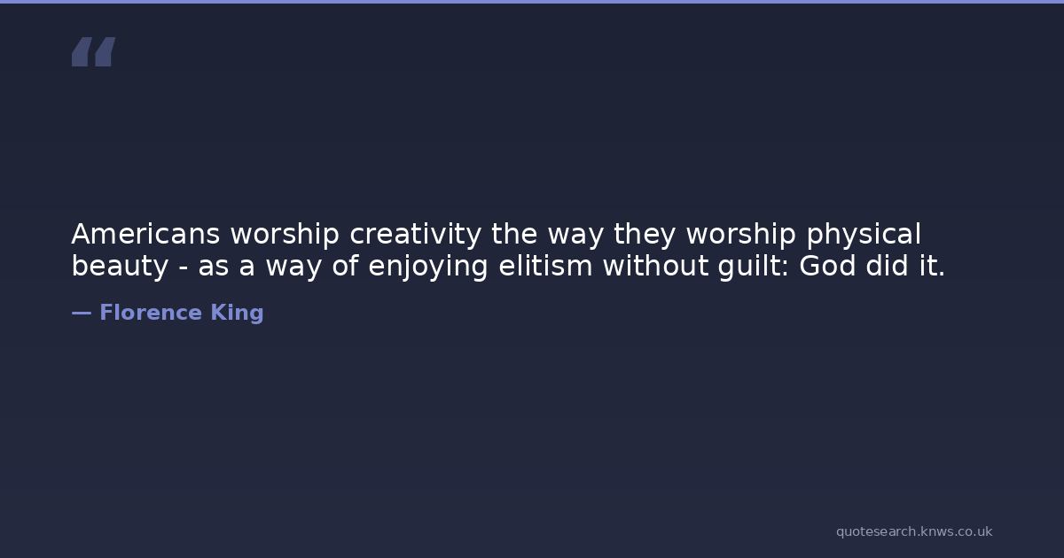Americans worship creativity the way they worship physical beauty - as a way of enjoying elitism without guilt: God did it.