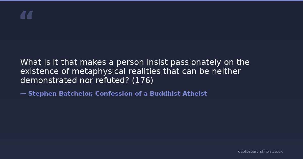 What is it that makes a person insist passionately on the existence of metaphysical realities that can be neither demonstrated nor refuted? (176)