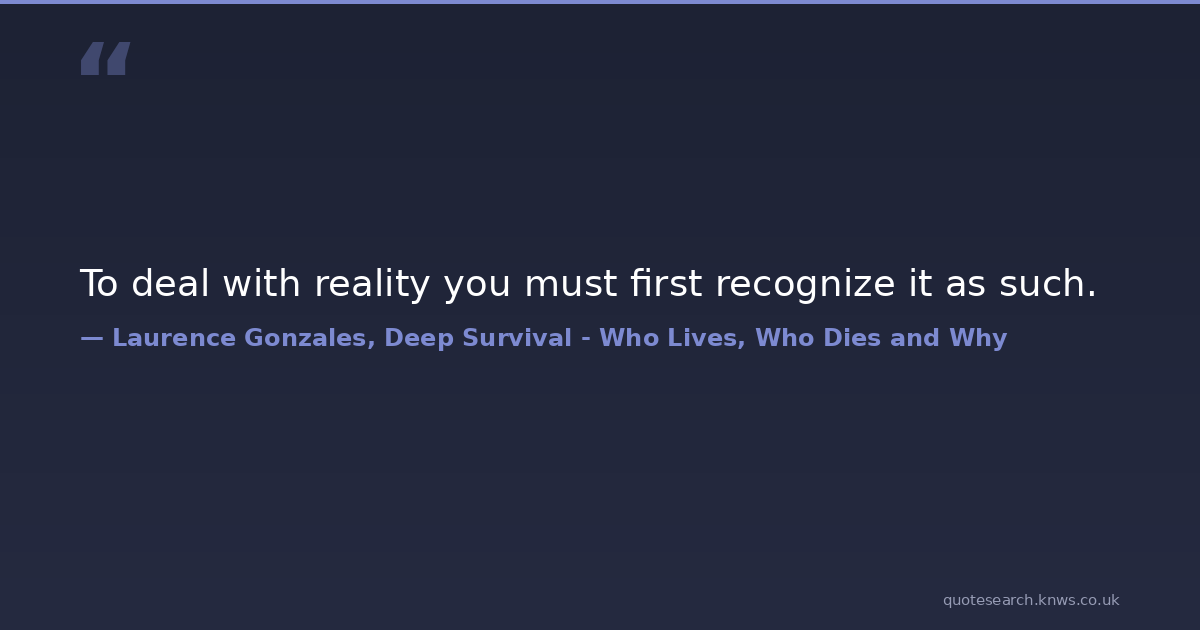 To deal with reality you must first recognize it as such. reality survival Download Image Share on X Share on Facebook Copy Link