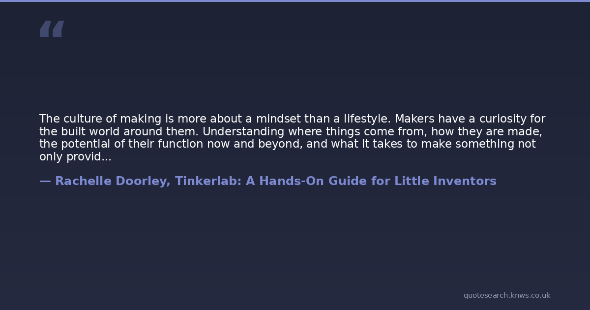 The culture of making is more about a mindset than a lifestyle. Makers have a curiosity for the built world around them. Understanding where things come from, how they are made, the potential of their function now and beyond, and what it takes to make something not only provides a context to appreciate the object at hand but is essential to imagining infinite possibilities for the future.
