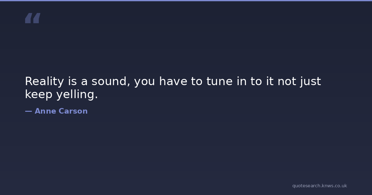 Reality is a sound, you have to tune in to it not just keep yelling.