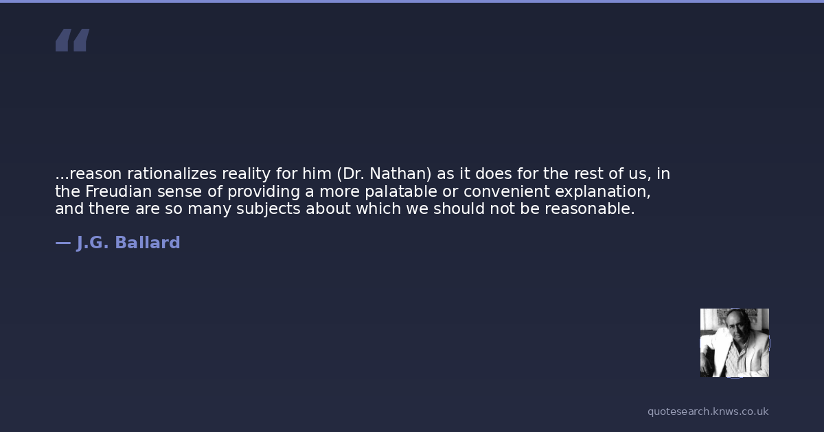 ...reason rationalizes reality for him (Dr. Nathan) as it does for the rest of us, in the Freudian sense of providing a more palatable or convenient explanation, and there are so many subjects about which we should not be reasonable.