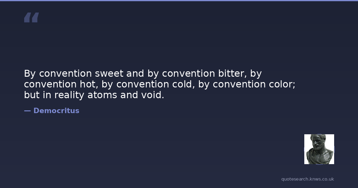 By convention sweet and by convention bitter, by convention hot, by convention cold, by convention color; but in reality atoms and void.