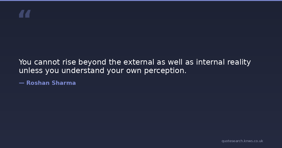 You cannot rise beyond the external as well as internal reality unless you understand your own perception.