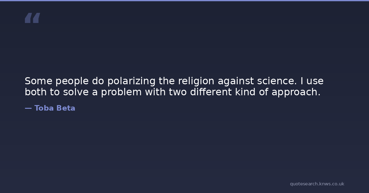 Some people do polarizing the religion against science. I use both to solve a problem with two different kind of approach.