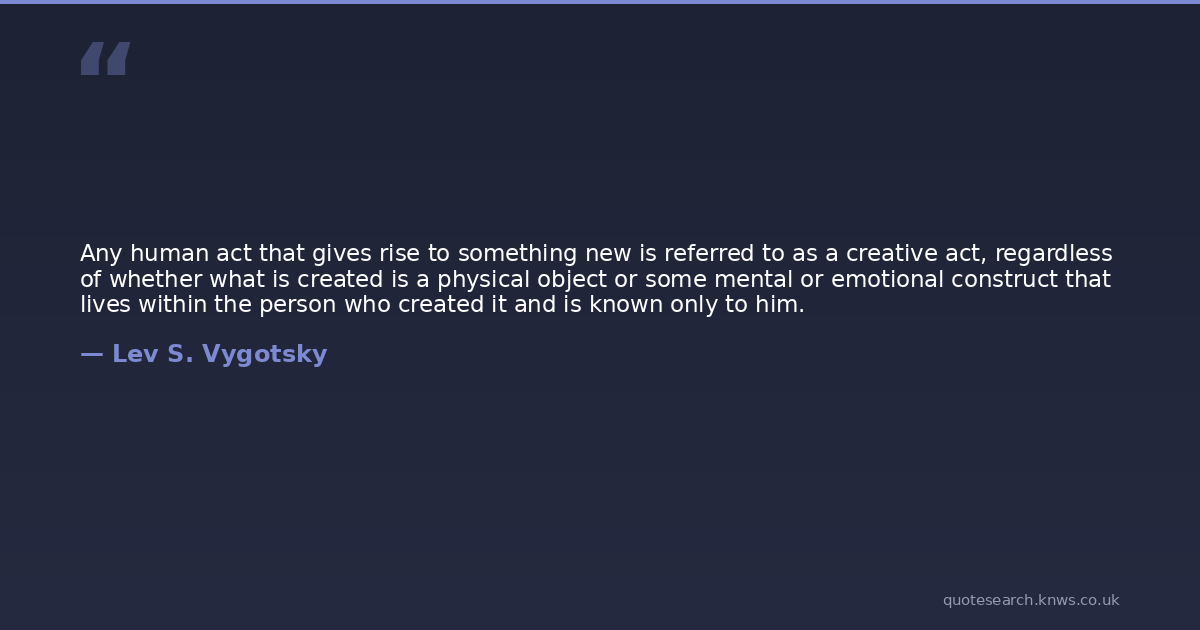 Any human act that gives rise to something new is referred to as a creative act, regardless of whether what is created is a physical object or some mental or emotional construct that lives within the person who created it and is known only to him.