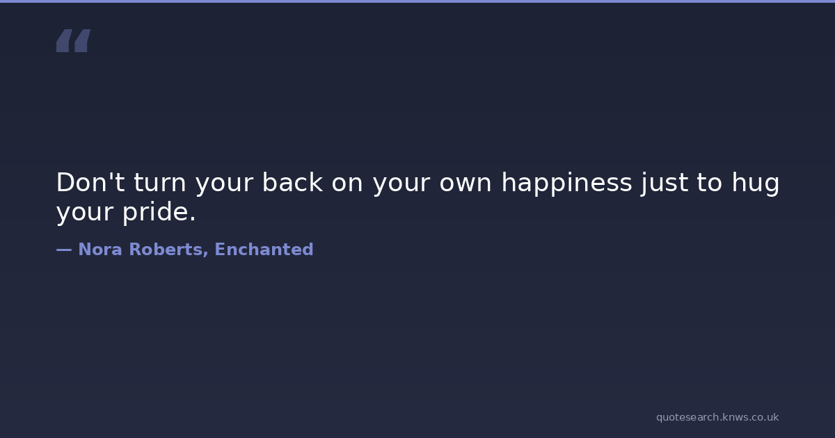 Don't turn your back on your own happiness just to hug your pride. donovan happiness love mrs-donovan pride Download Image Share on X Share on Facebook Copy Link