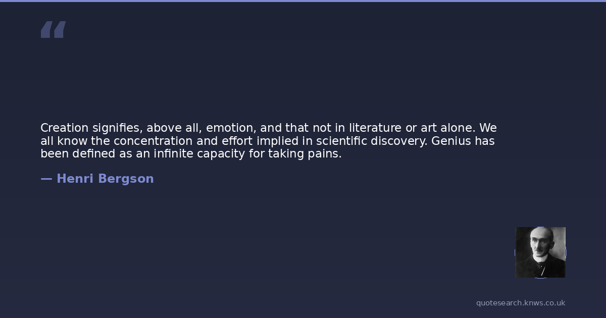 Creation signifies, above all, emotion, and that not in literature or art alone. We all know the concentration and effort implied in scientific discovery. Genius has been defined as an infinite capacity for taking pains.