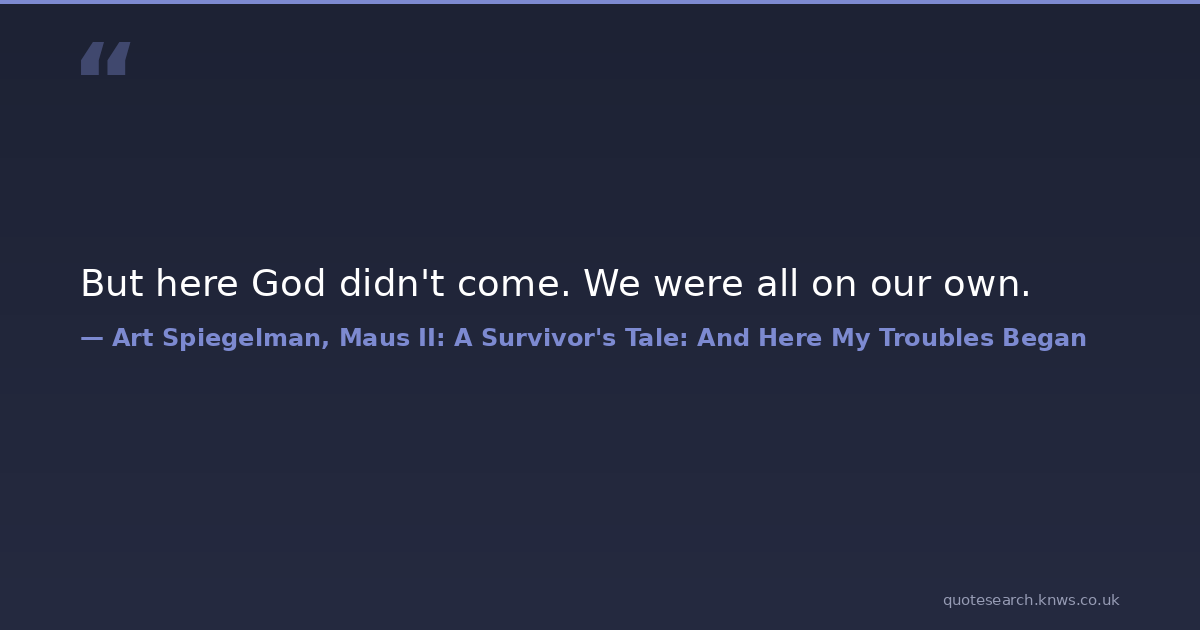But here God didn't come. We were all on our own. aushwitz god holocaust maus religion Download Image Share on X Share on Facebook Copy Link