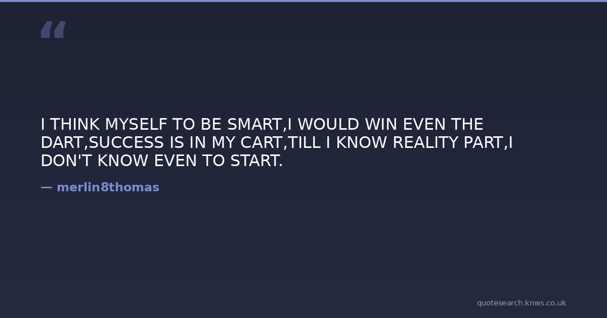 I THINK MYSELF TO BE SMART,I WOULD WIN EVEN THE DART,SUCCESS IS IN MY CART,TILL I KNOW REALITY PART,I DON'T KNOW EVEN TO START.