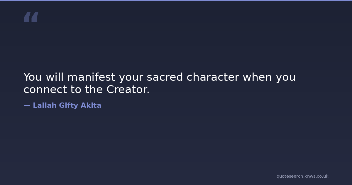 You will manifest your sacred character when you connect to the Creator.