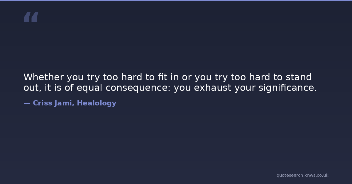 Whether you try too hard to fit in or you try too hard to stand out, it is of equal consequence: you exhaust your significance.