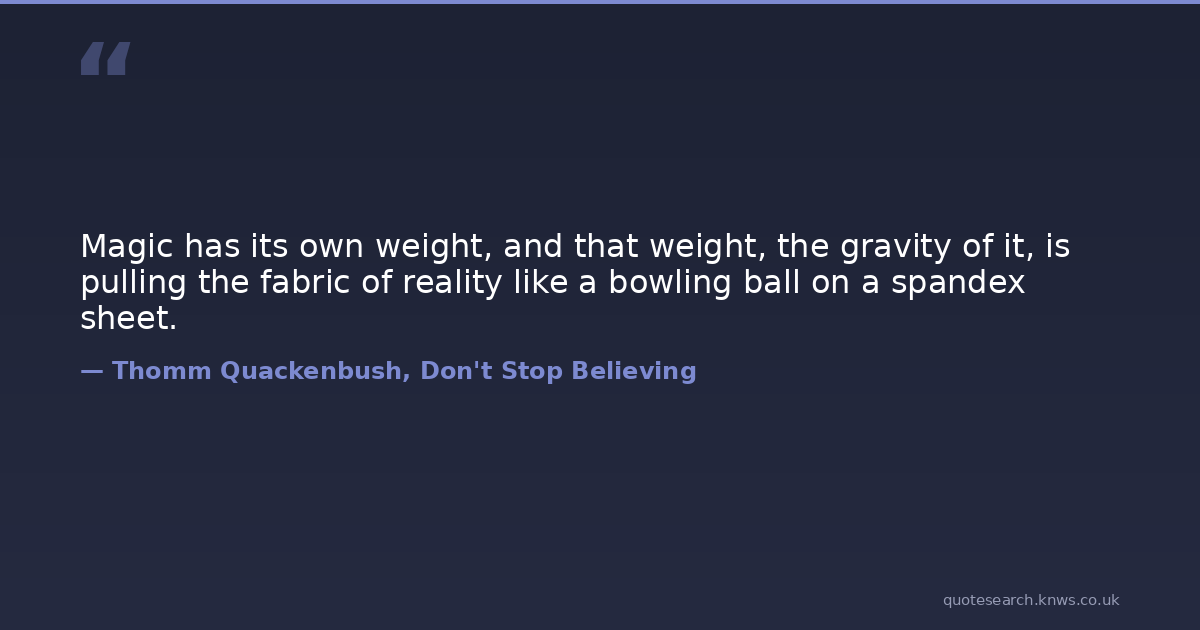 Magic has its own weight, and that weight, the gravity of it, is pulling the fabric of reality like a bowling ball on a spandex sheet.