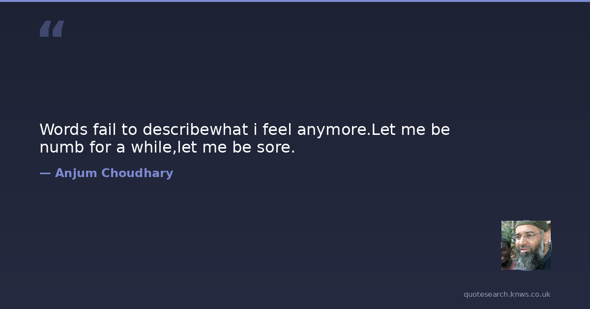 Words fail to describewhat i feel anymore.Let me be numb for a while,let me be sore.