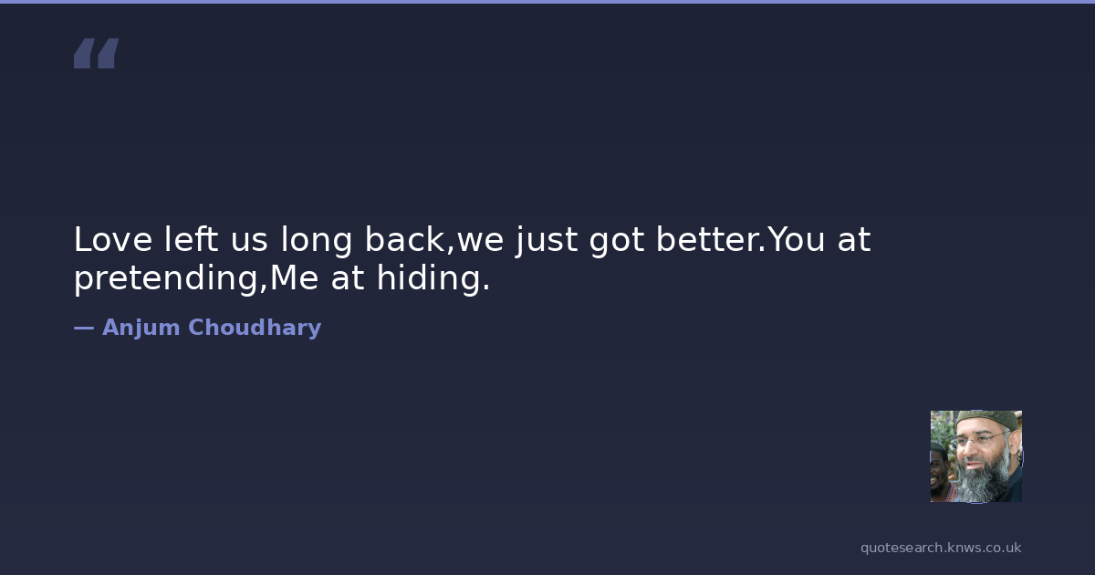 Love left us long back,we just got better.You at pretending,Me at hiding.