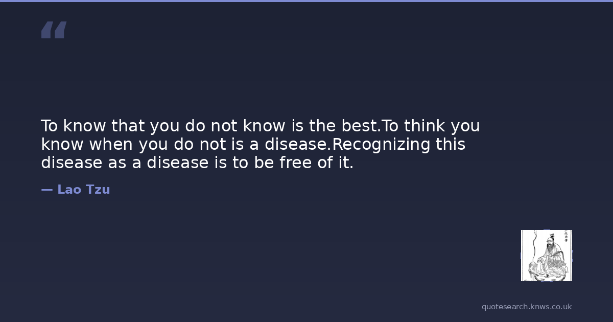To know that you do not know is the best.To think you know when you do not is a disease.Recognizing this disease as a disease is to be free of it.