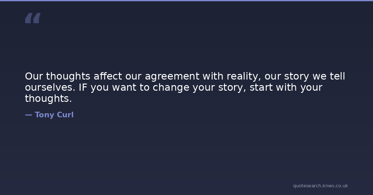 Our thoughts affect our agreement with reality, our story we tell ourselves. IF you want to change your story, start with your thoughts.