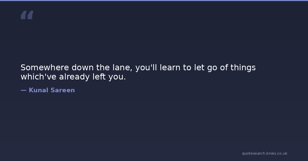 Somewhere down the lane, you'll learn to let go of things which've already left you. reality Download Image Share on X Share on Facebook Copy Link