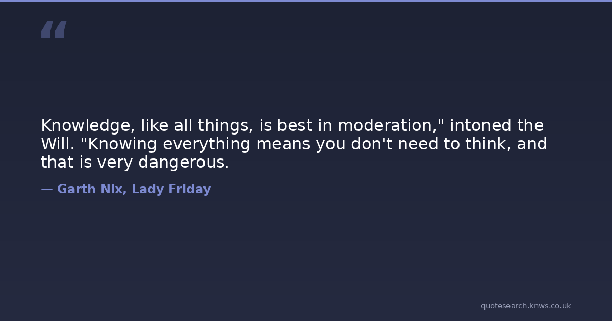 Knowledge, like all things, is best in moderation," intoned the Will. "Knowing everything means you don't need to think, and that is very dangerous.