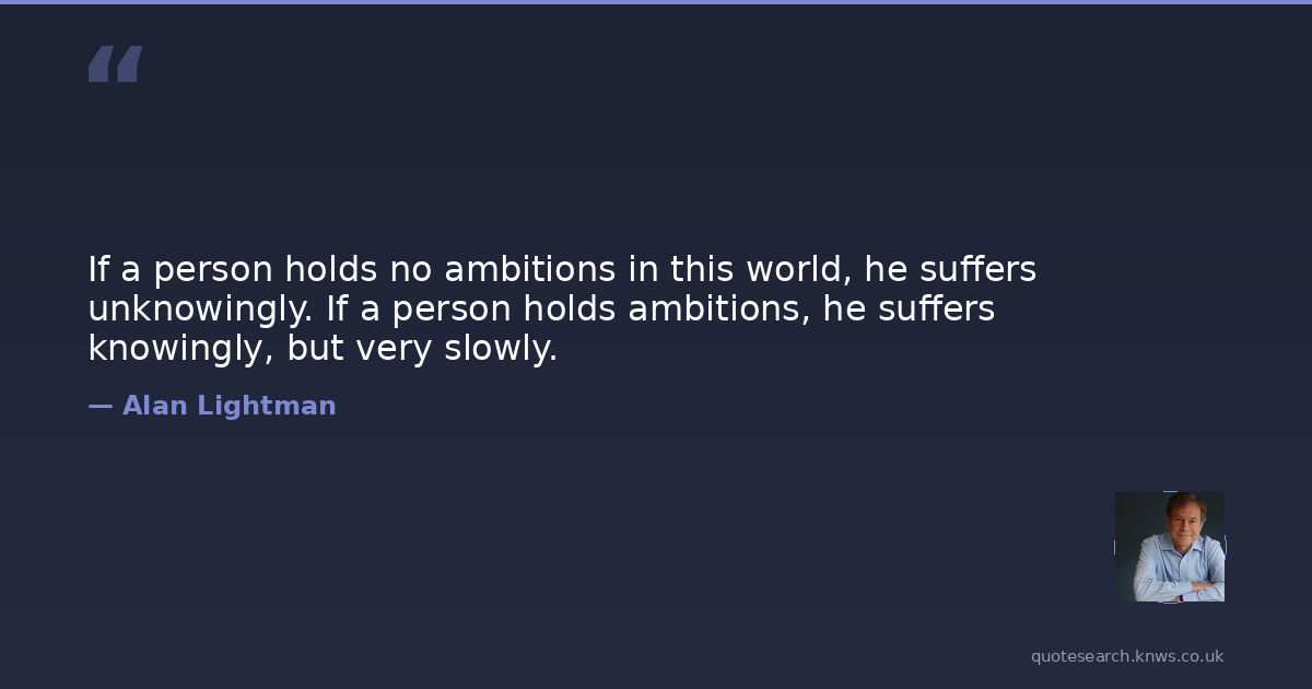 If a person holds no ambitions in this world, he suffers unknowingly. If a person holds ambitions, he suffers knowingly, but very slowly.