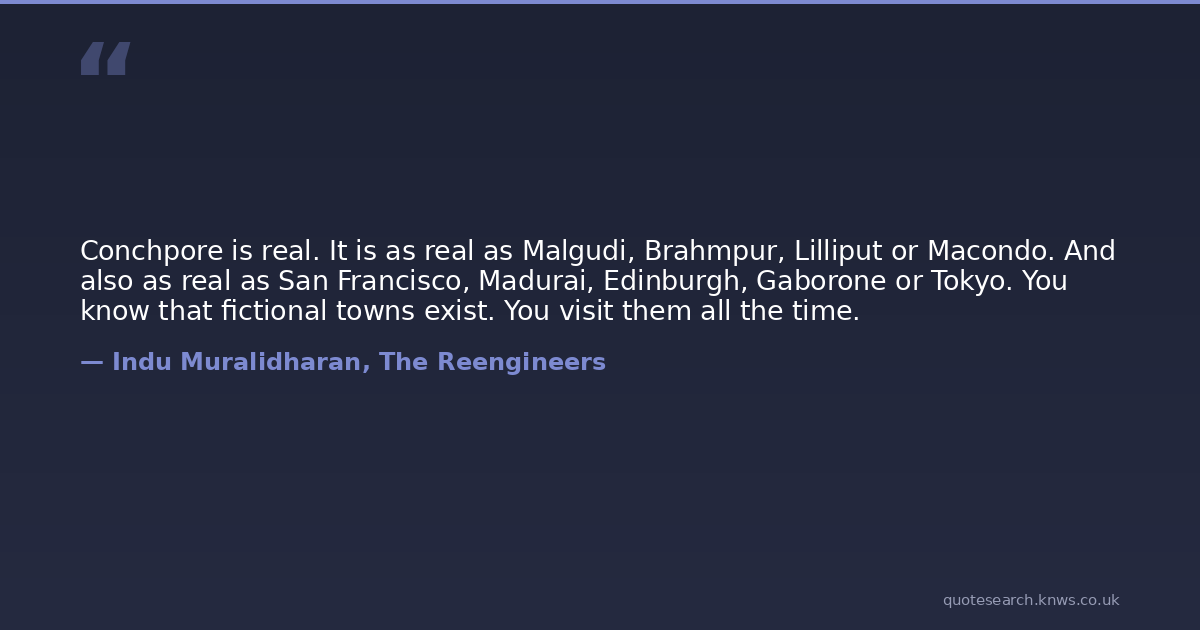Conchpore is real. It is as real as Malgudi, Brahmpur, Lilliput or Macondo. And also as real as San Francisco, Madurai, Edinburgh, Gaborone or Tokyo. You know that fictional towns exist. You visit them all the time.