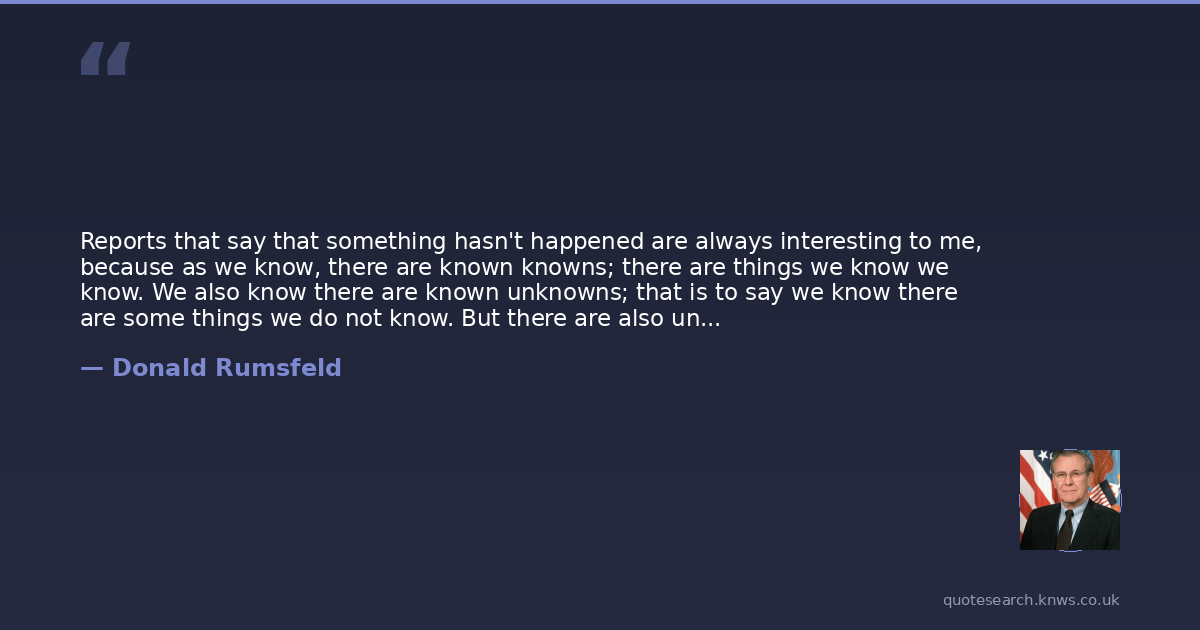 Reports that say that something hasn't happened are always interesting to me, because as we know, there are known knowns; there are things we know we know. We also know there are known unknowns; that is to say we know there are some things we do not know. But there are also unknown unknowns- the ones we don't know we don't know.