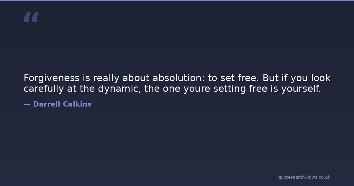 Forgiveness is really about absolution: to set free. But if you look carefully at the dynamic, the one youre setting free is yourself.
