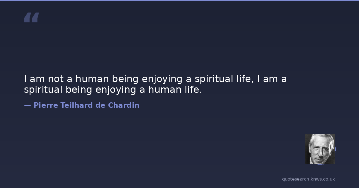 I am not a human being enjoying a spiritual life, I am a spiritual being enjoying a human life.