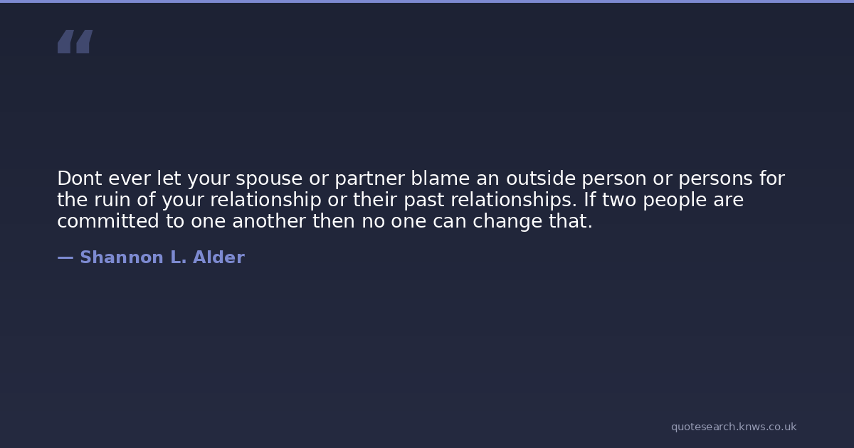 Dont ever let your spouse or partner blame an outside person or persons for the ruin of your relationship or their past relationships. If two people are committed to one another then no one can change that.