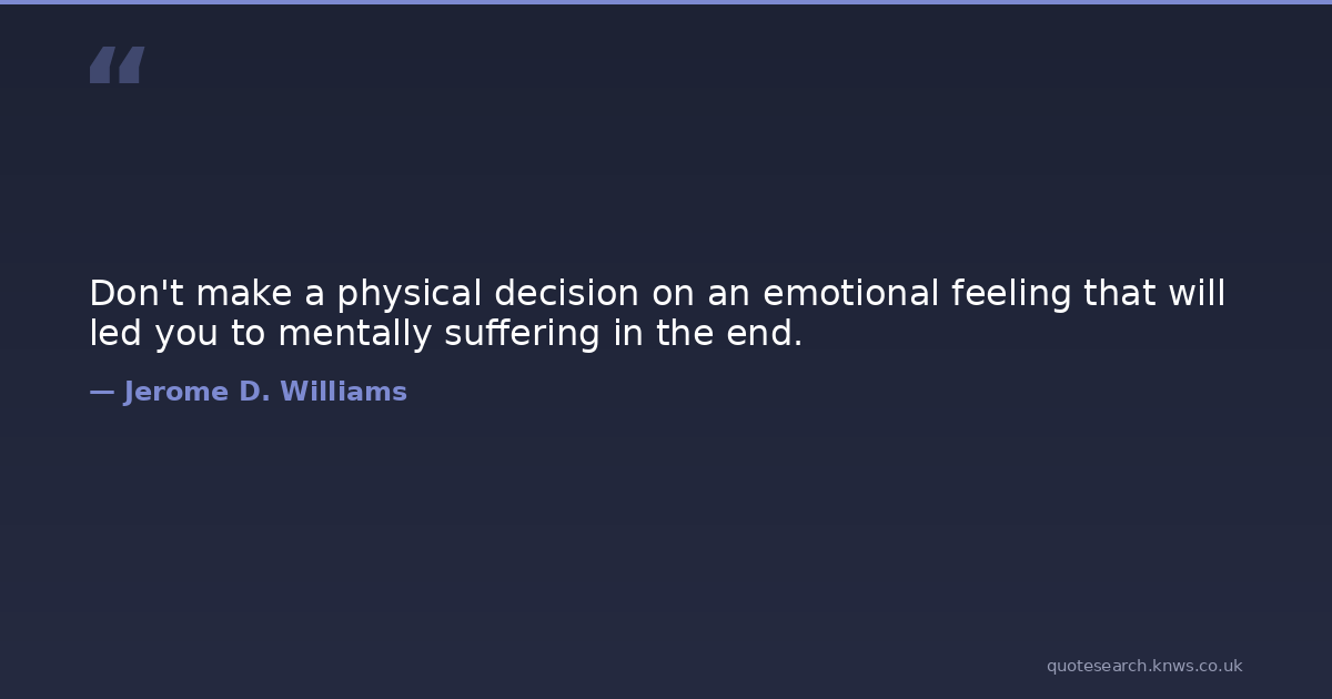 Don't make a physical decision on an emotional feeling that will led you to mentally suffering in the end.