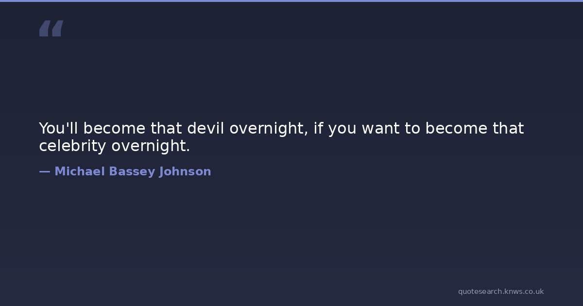 You'll become that devil overnight, if you want to become that celebrity overnight.